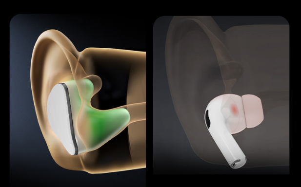 听智慧定制蓝牙耳机与普通耳机对耳部压力的对比示意图