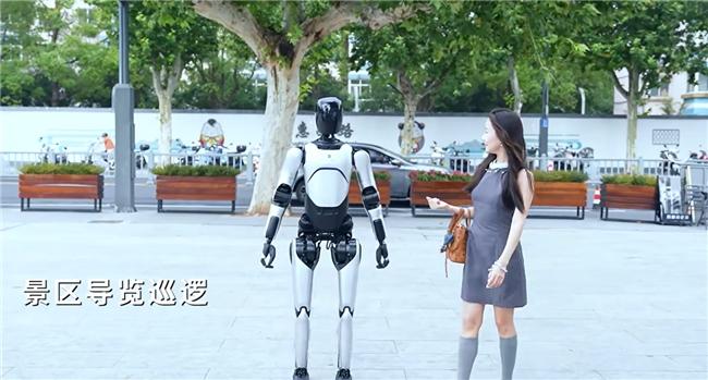 在场景实测中,远征A2不仅能够自主完成景区导览巡逻,还能够为游客进行景区咨询导览、景区讲解介绍、自动识别导航点并完成导航带路、甚至是多模态三子棋互动等操作。值得一提的是,经过此次升级,远征A2行走提速了33%,同时能够保持在草坪地、鹅卵石路等在多种路况下稳定行走。这一系列能力的整合,使远征A2不再仅仅是执行预设任务的机器,而是具备一定场景认知与决策能力的“智能体”。
